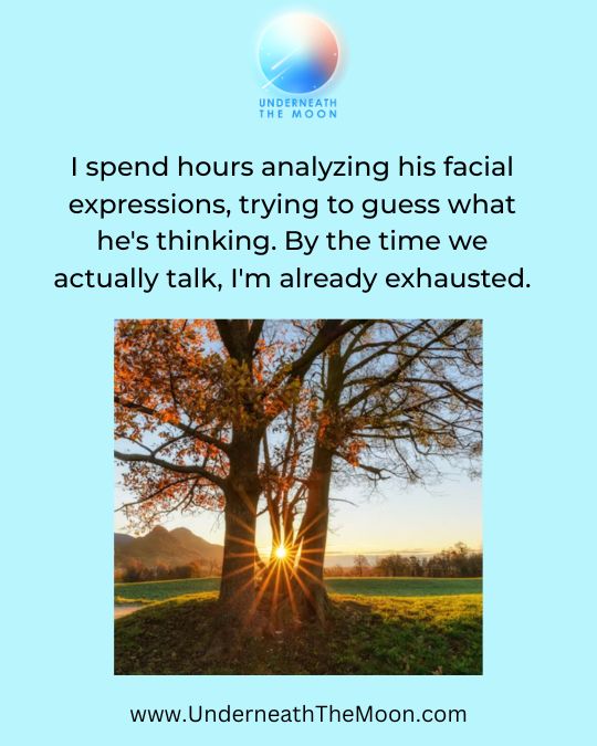 I spend hours analyzing his facial expressions, trying to guess what he’s thinking. By the time we actually talk, I’m already exhausted.