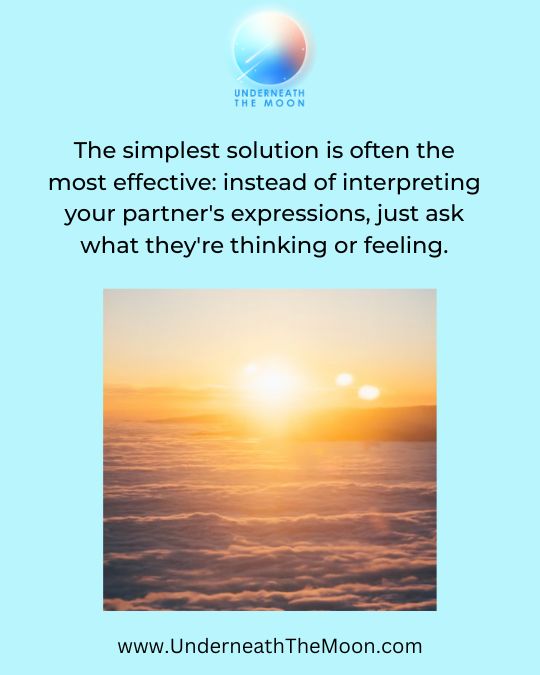 The simplest solution is often the most effective: instead of interpreting your partner’s expressions, just ask what they’re thinking or feeling.