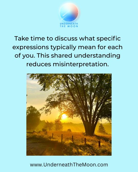 Take time to discuss what specific expressions typically mean for each of you. This shared understanding reduces misinterpretation.
