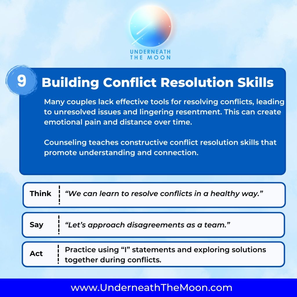 Counseling teaches constructive conflict resolution skills that promote understanding and connection.