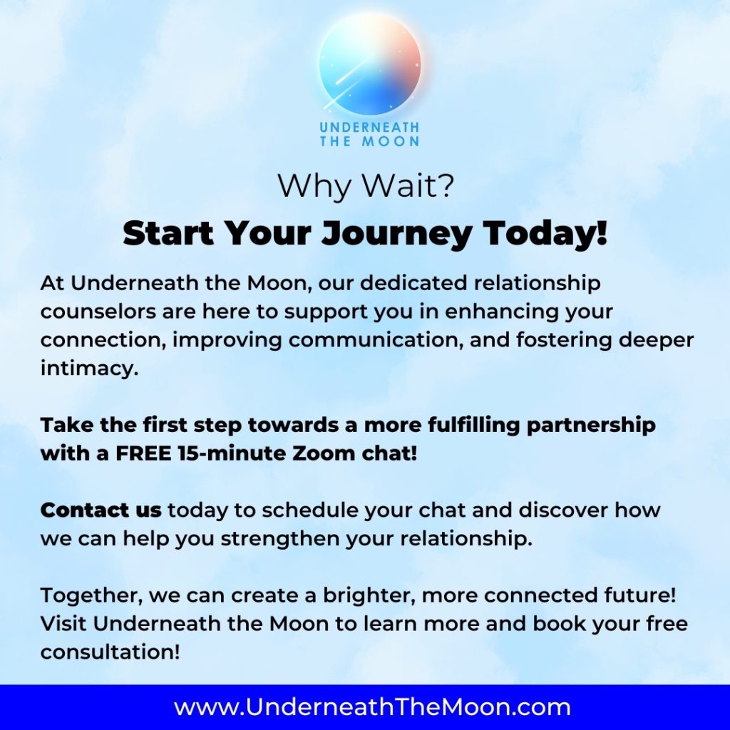 At Underneath the Moon, our dedicated relationship counselors are here to support you in enhancing your connection, improving communication, and fostering deeper intimacy.