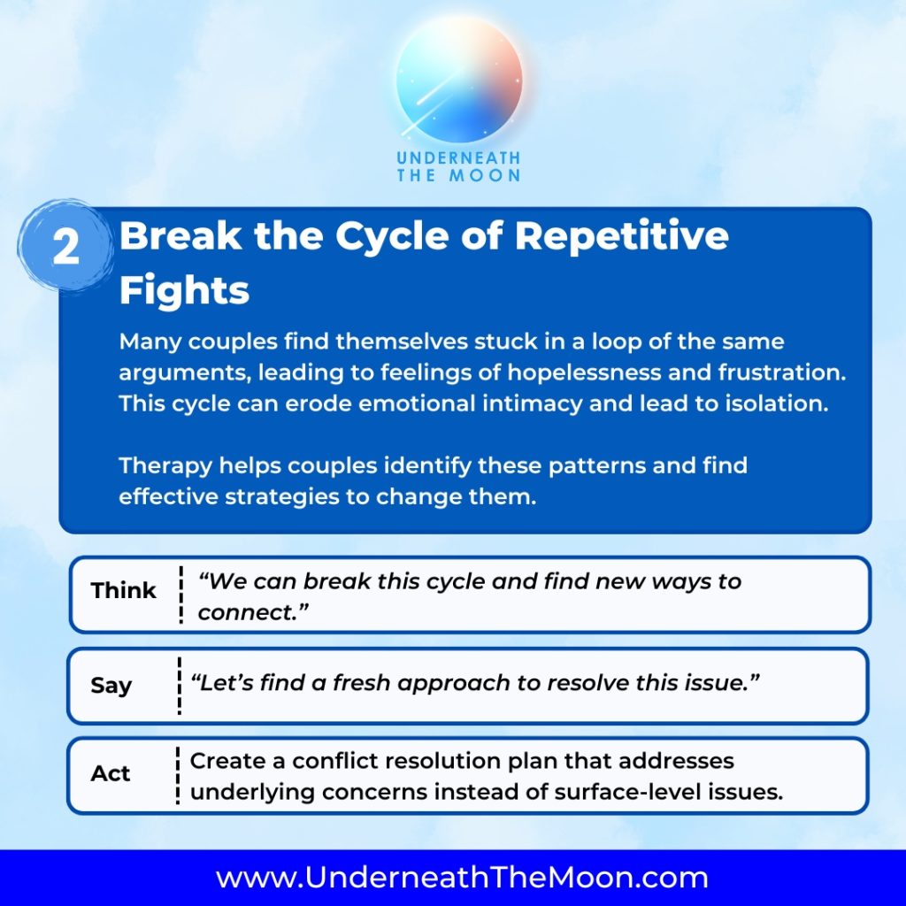 Therapy helps couples identify these patterns and find effective strategies to change them.
