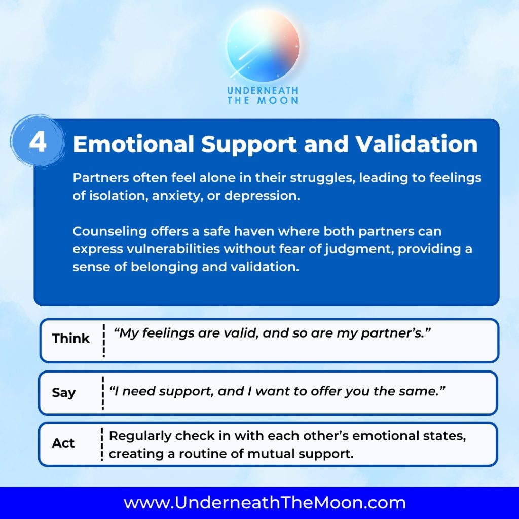 Counseling offers a safe haven where both partners can express vulnerabilities without fear of judgment, providing a sense of belonging and validation.