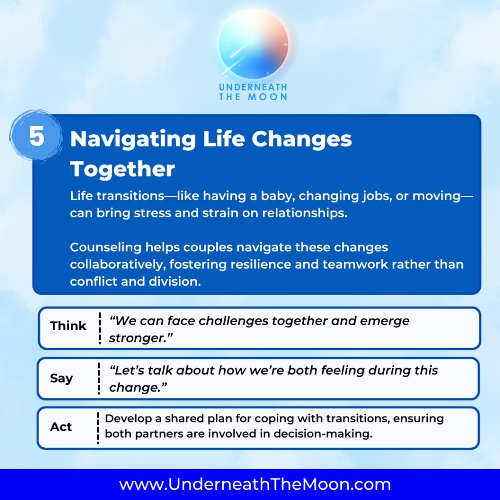Counseling helps couples navigate these changes collaboratively, fostering resilience and teamwork rather than conflict and division.