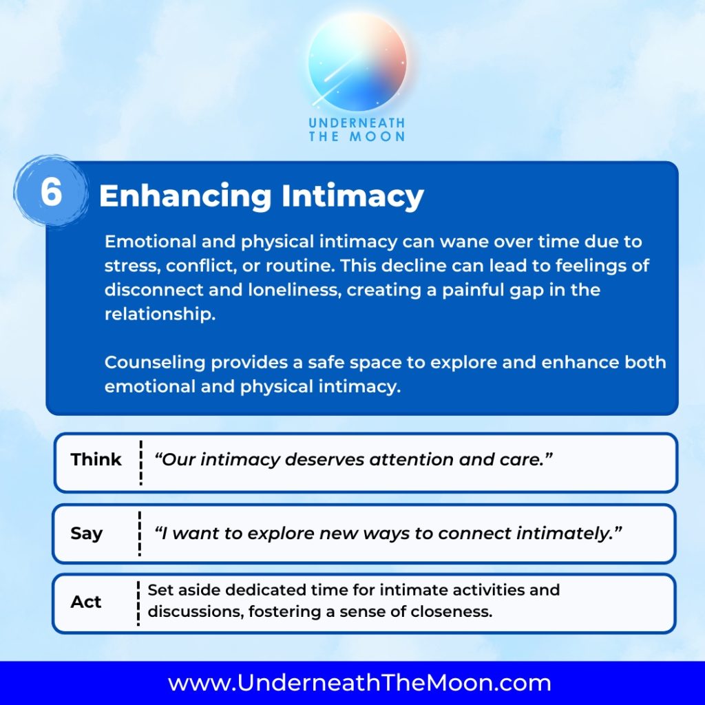Counseling provides a safe space to explore and enhance both emotional and physical intimacy.
