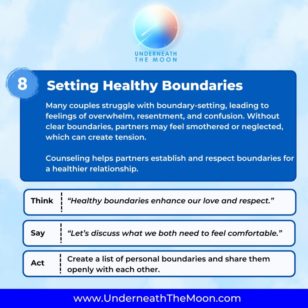 Many couples struggle with boundary-setting, leading to feelings of overwhelm, resentment, and confusion. Without clear boundaries, partners may feel smothered or neglected, which can create tension.